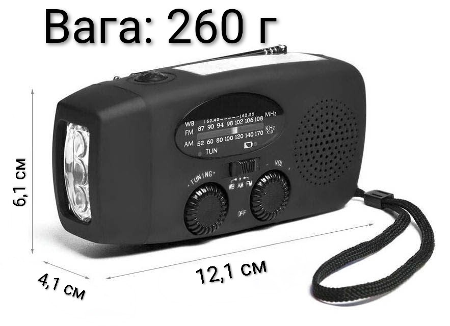 Аварійне Радіо 3-в-1 — це мультифункціональний пристрій для забезпечення автономності, який поєднує ліхтарик, радіоприймач та PowerBank (2000 мАг).